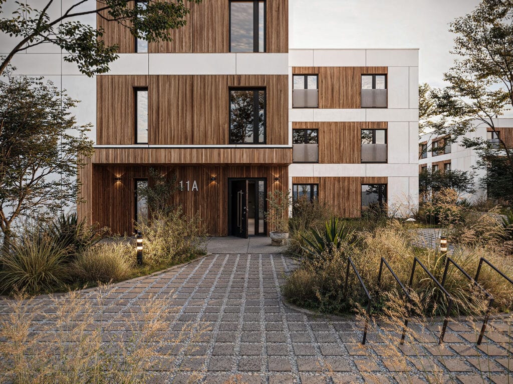 CLT is sterk, duurzaam en bestand tegen vervorming. Met het juiste onderhoud gaan CLT-woningen tientallen jaren mee.